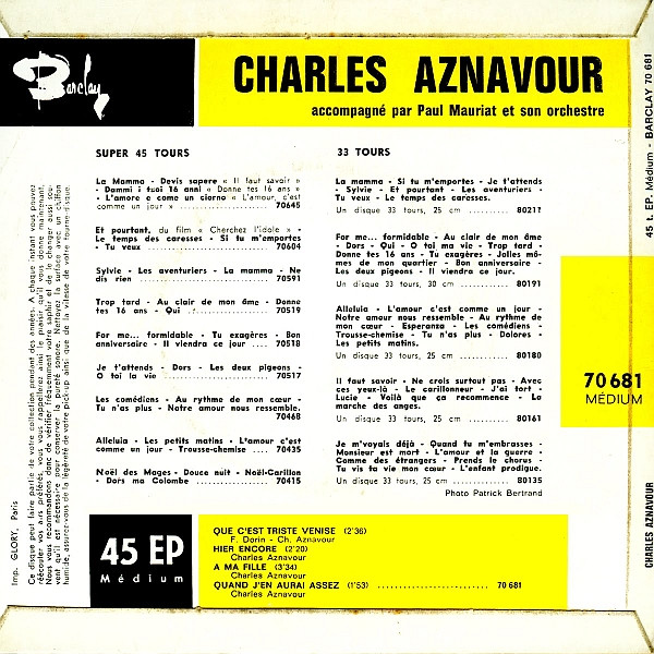 CHARLES AZNAVOUR – Que c’est triste Venise