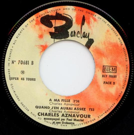 Pour l’enregistrement de cette chanson le producteur Eddie Barclay met les gros moyens en mettant à la disposition de Charles Aznavour un orchestre philharmonique.