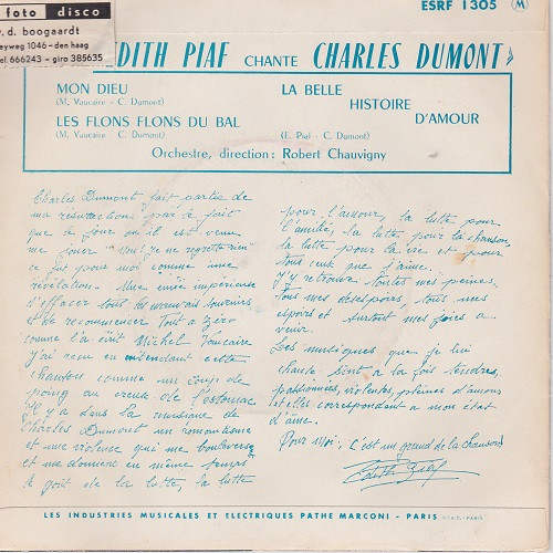Paroles et musique Michel Vaucaire et Charles Dumont