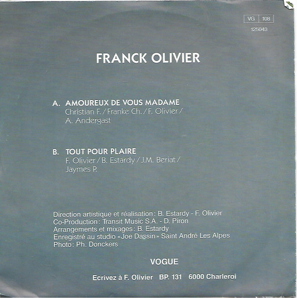 FRANCK OLIVIER – Amoureux de vous madame