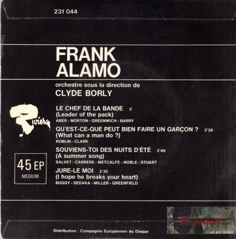 Après plusieurs succès, Frank Alamo met un terme à sa carrière en 1968 pour devenir d’abord photographe puis vendeur de voitures de luxe.
