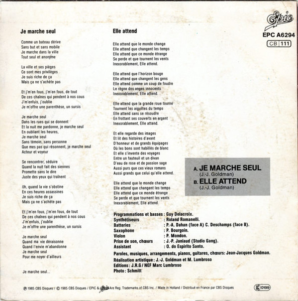 Je marche seul fait son entrée dans le Top 50 le 17 juin 1985 pour 30 semaines consécutives et une meilleure 2ème place à la fin du mois d’août 1985.