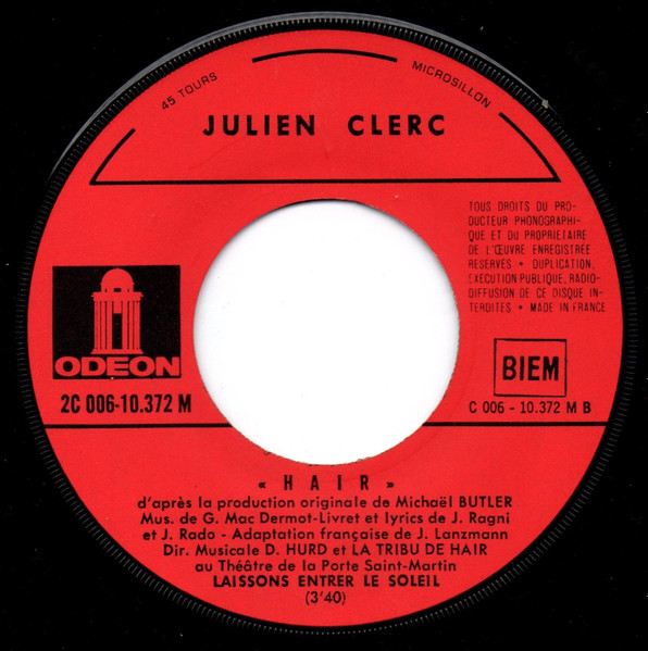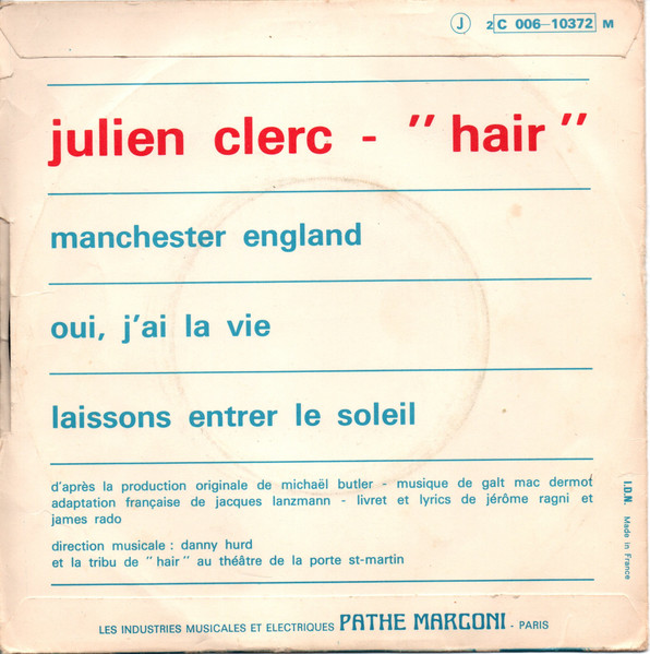 A partir du 30 mai 1969 Julien Clerc, 22 ans, est la « vedette » de la version française de la comédie musicale Hair qui se joue au Théâtre de la Porte-Saint-Martin à Paris.