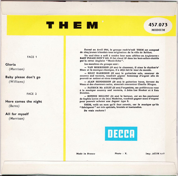 Ce 45 tours sort dans le commerce le 2 décembre 1964 en face B du single Baby please don’t go.